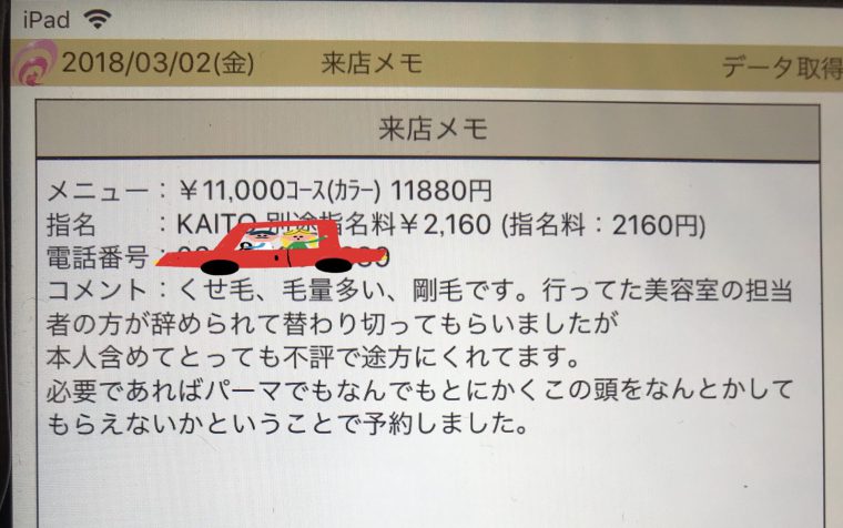先日新規指名でご来店のお客様の来店前コメント。