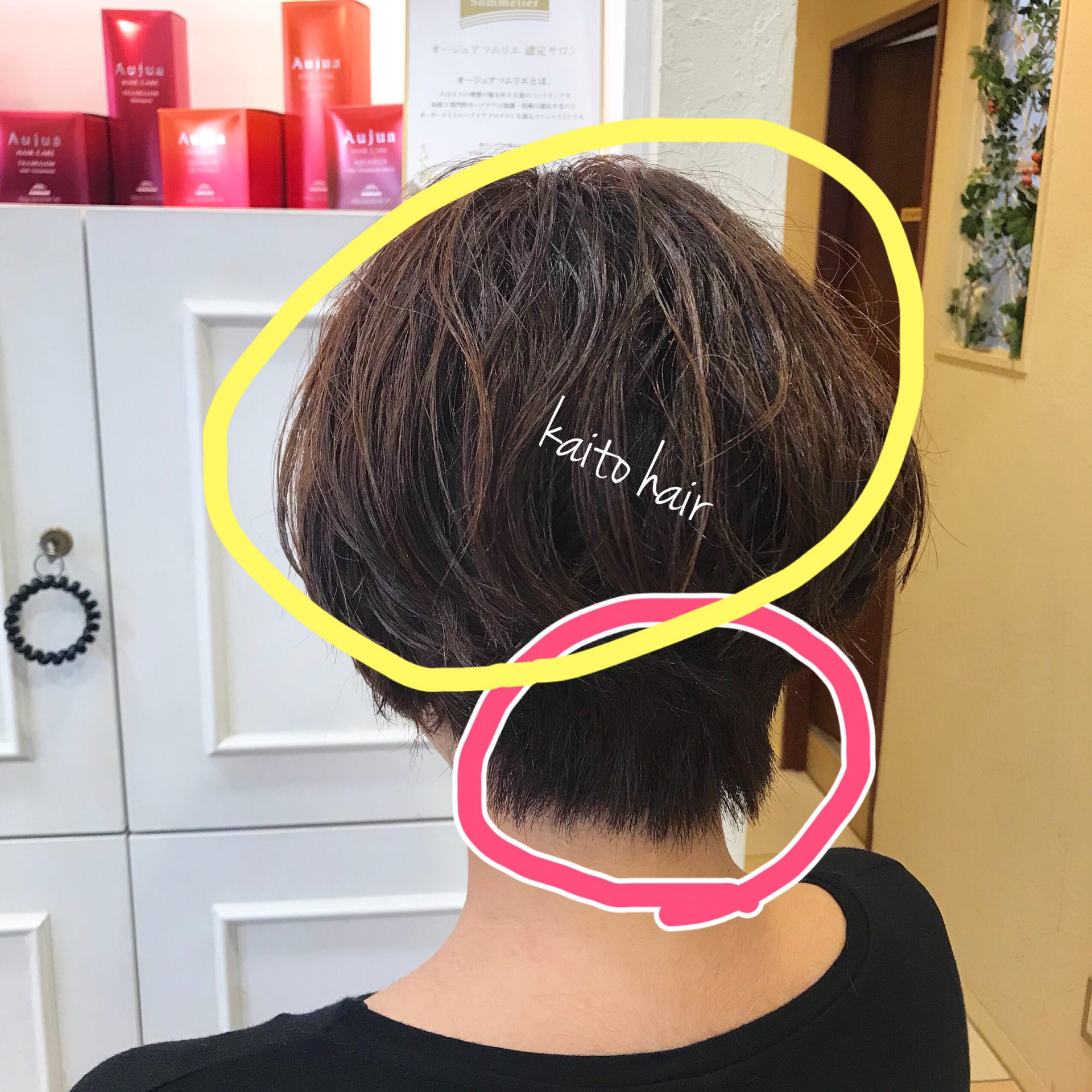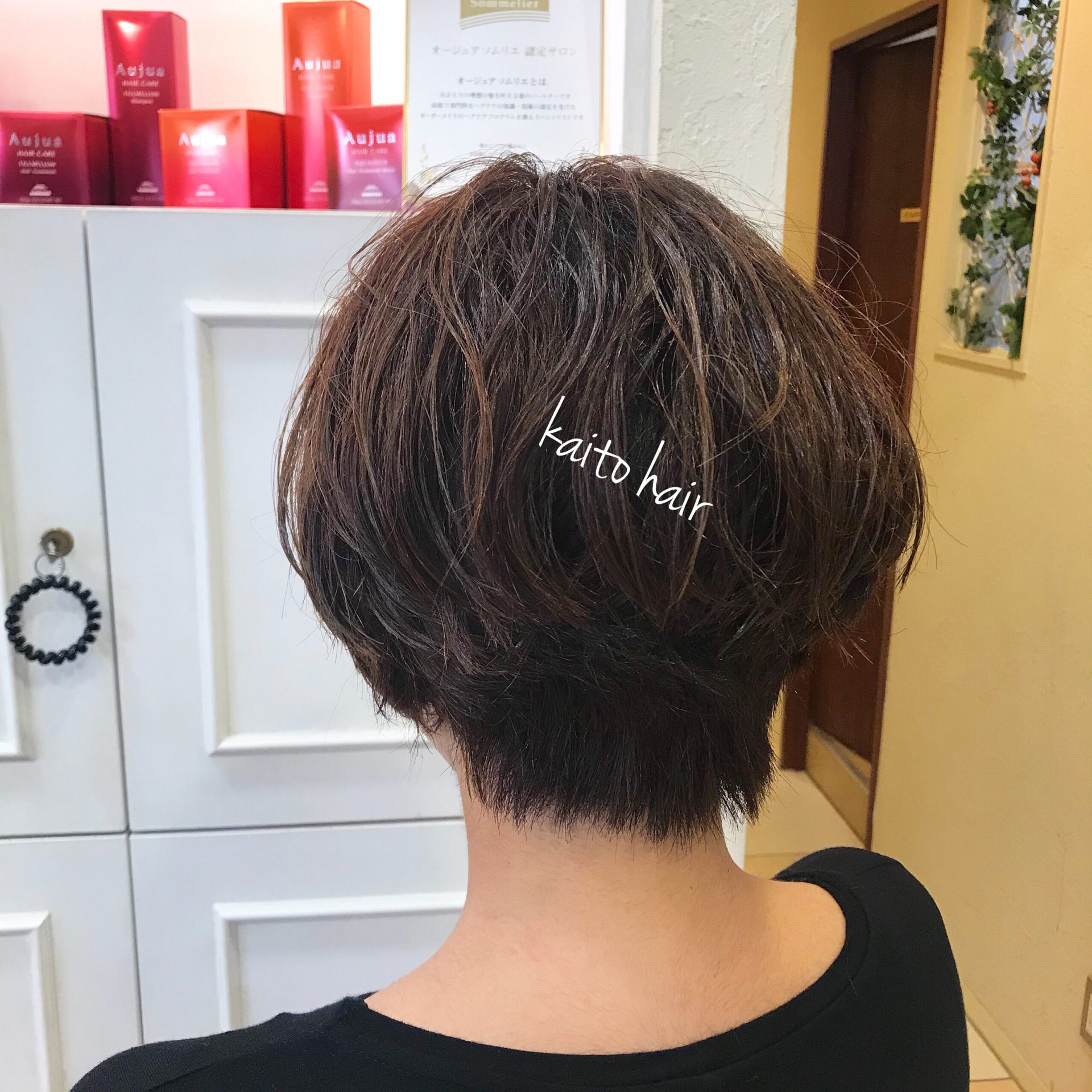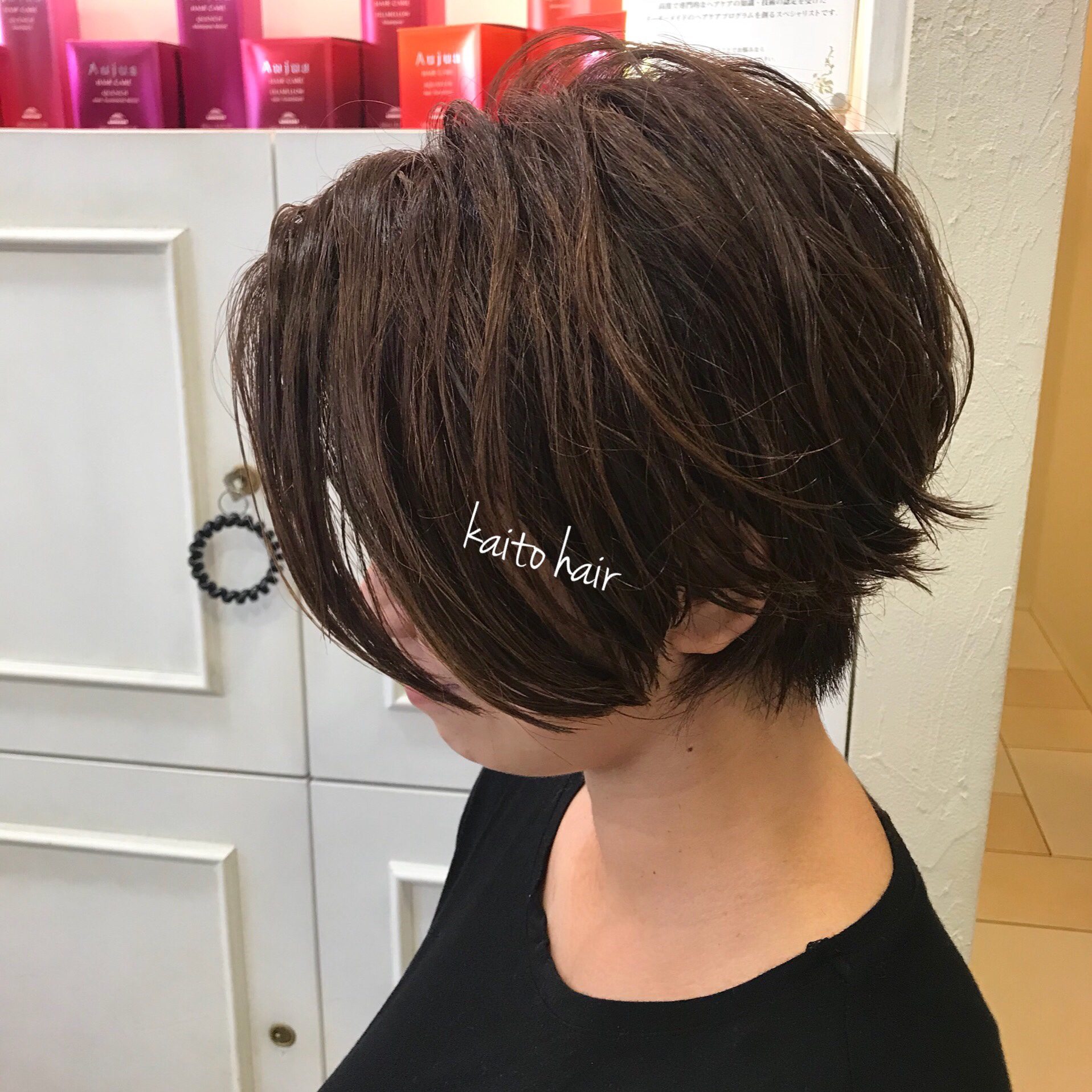 硬毛多毛のふくらみグセをカットだけでスタイリングが超楽なショートにしてくれとの事。