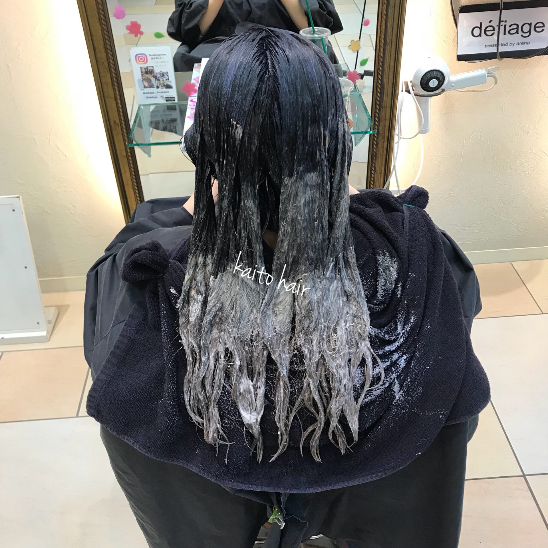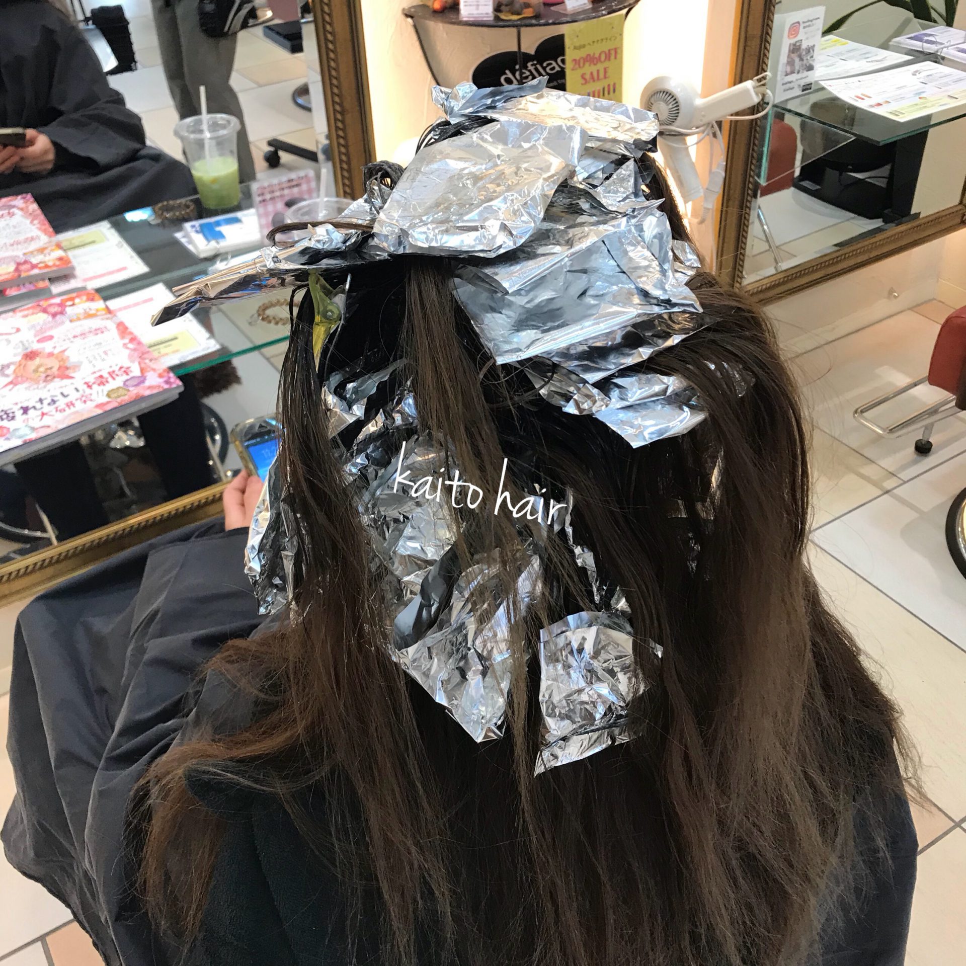 根元と中間と毛先の薬剤調合を変えてるんです♪