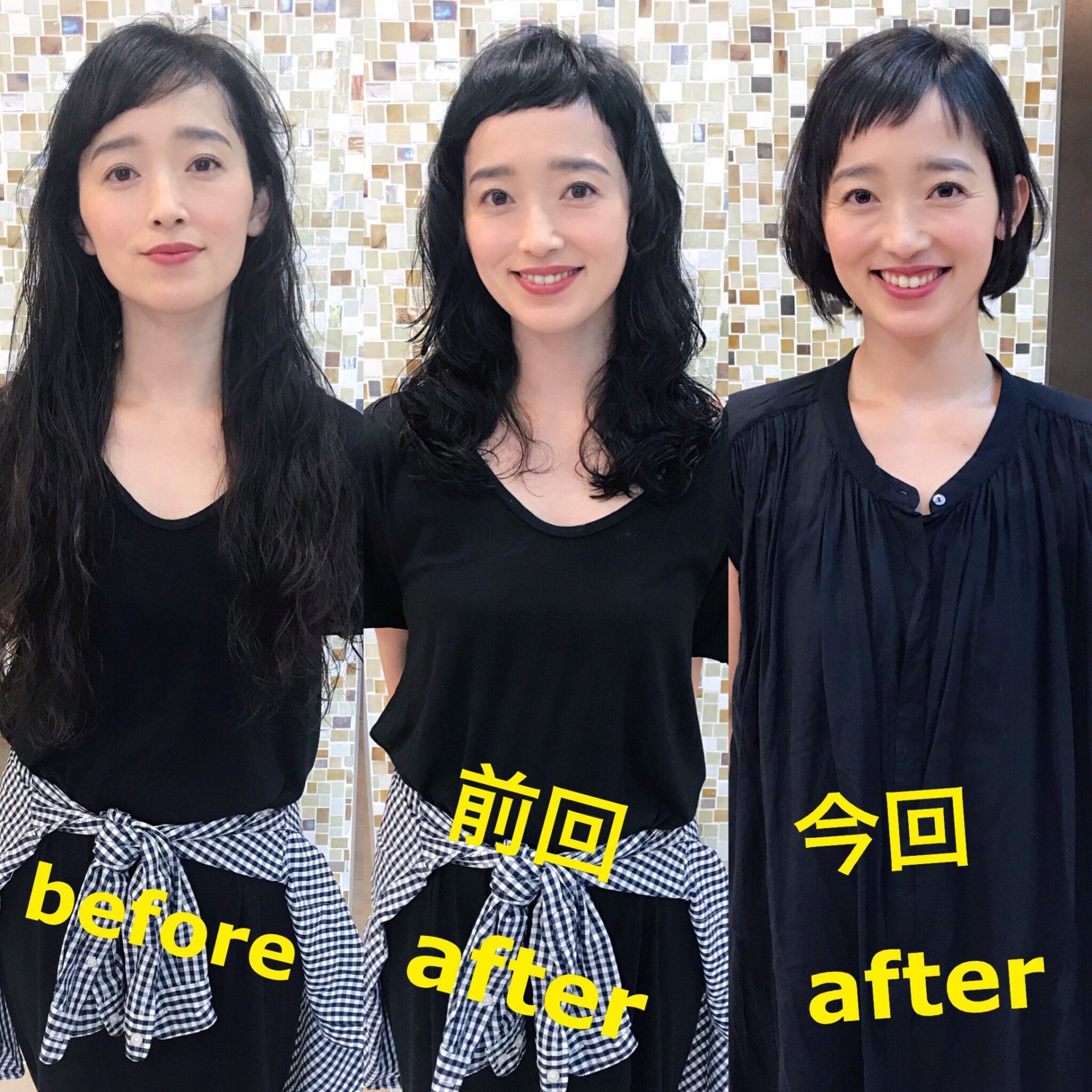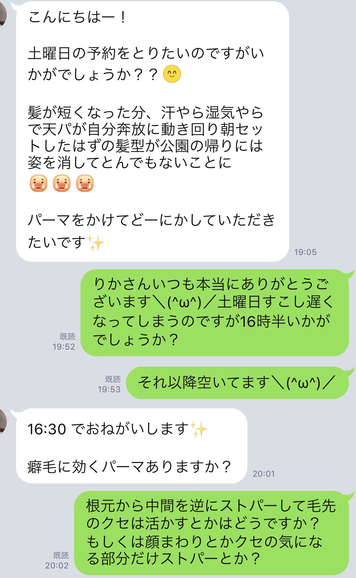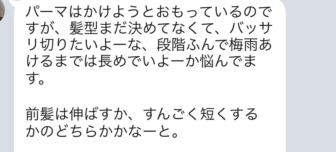 クセと毛先のパーマを活かして段階的に切っていくことに^ ^