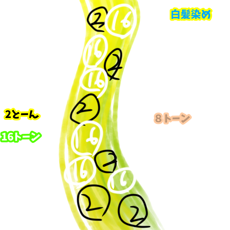 →例えば8トーンでも白髪が染まるベースなのに6トーンの白髪染めをしている。その場合は8トーンになるわけもないので6トーンのベースが出来上がります。
