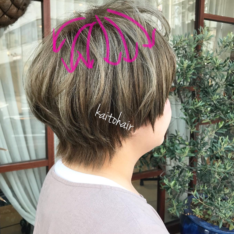 でもショートはつむじを中心にハイライトが放射状に散らかっていく!!