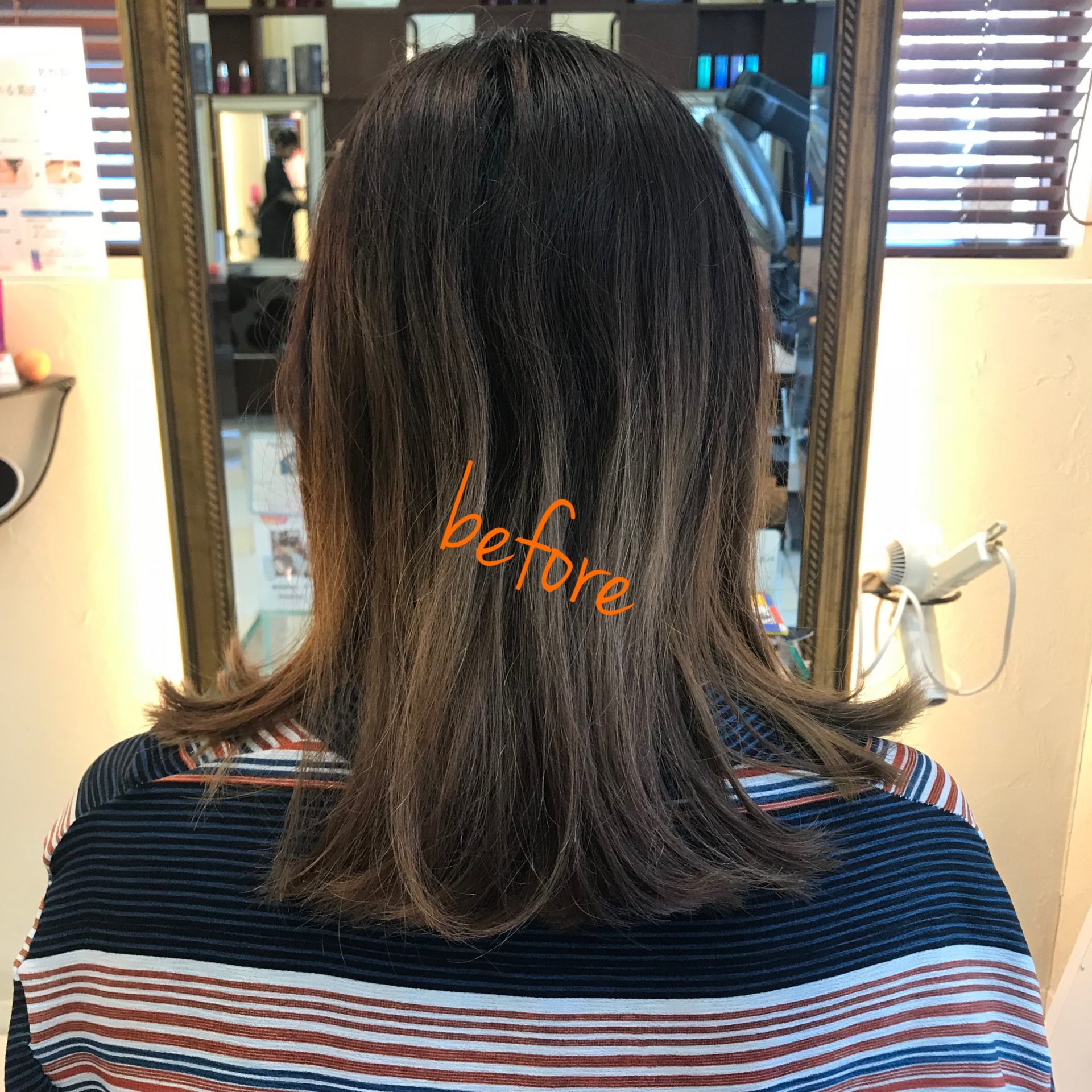 beforeはブリーチ履歴のある髪なので、