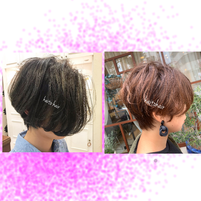 45度という数字にはあまり意味は無いんですけど例えば45度以下だと右のスタイルのような重心低めの重めのショートになりますし45度以上だと左のウェイト高めの軽めのショートになります^_^
