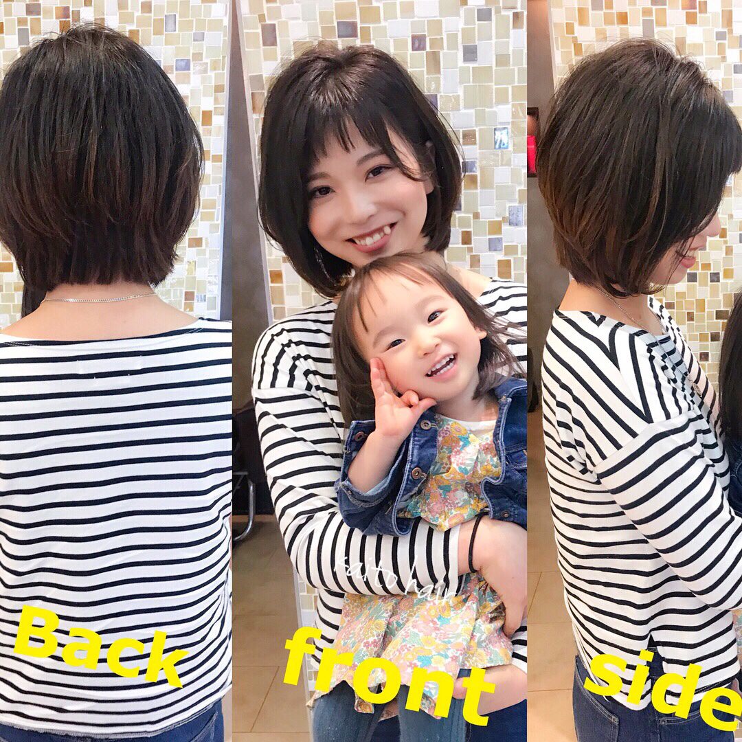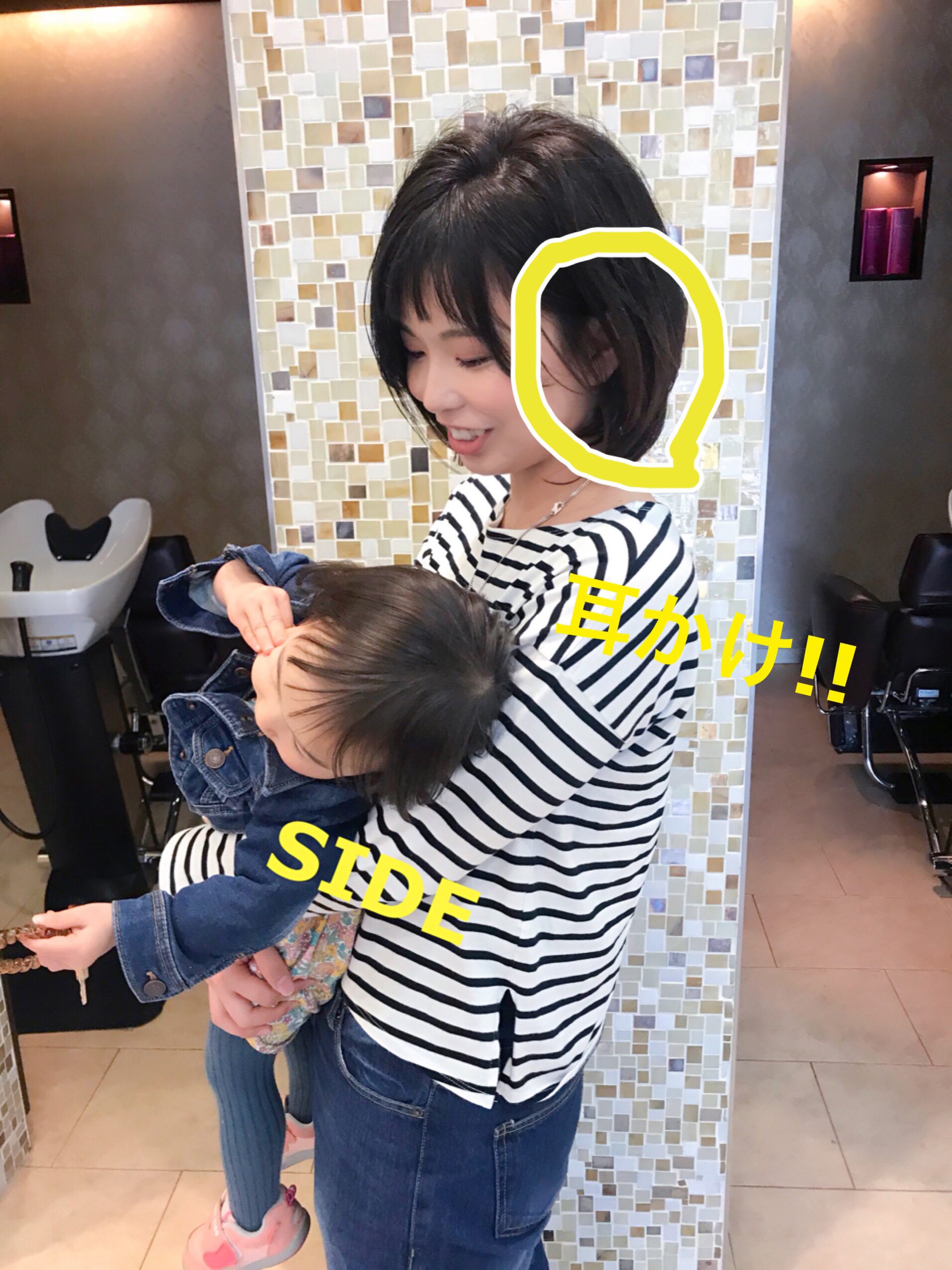ママ必見!!小顔系なオン眉前髪とくびれ系ひし形ボブがママにはめっちゃおススメ