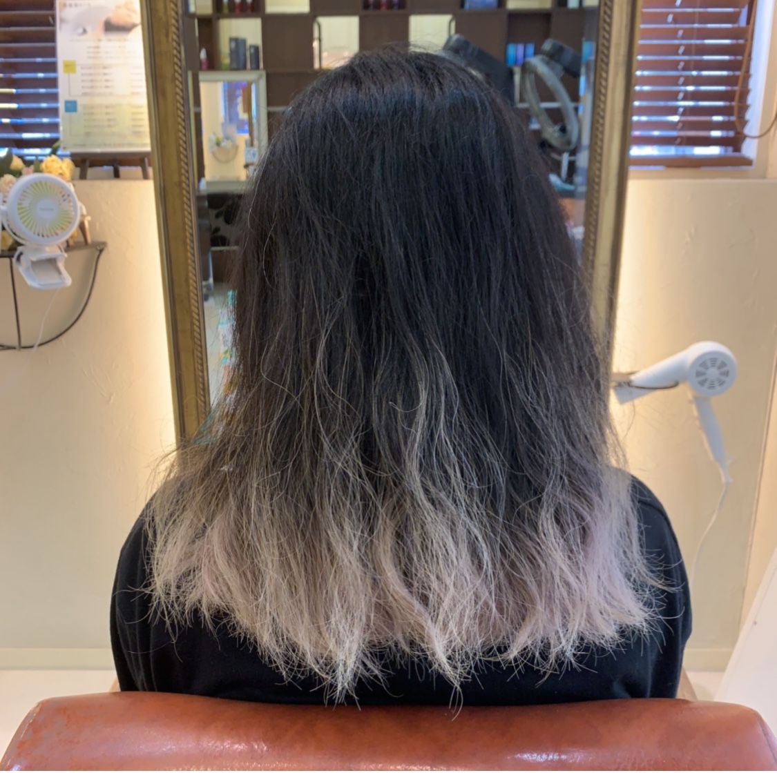 2.【ブリーチハイライトをデザインとして見せずに白髪をボカすブリーチワーク】
