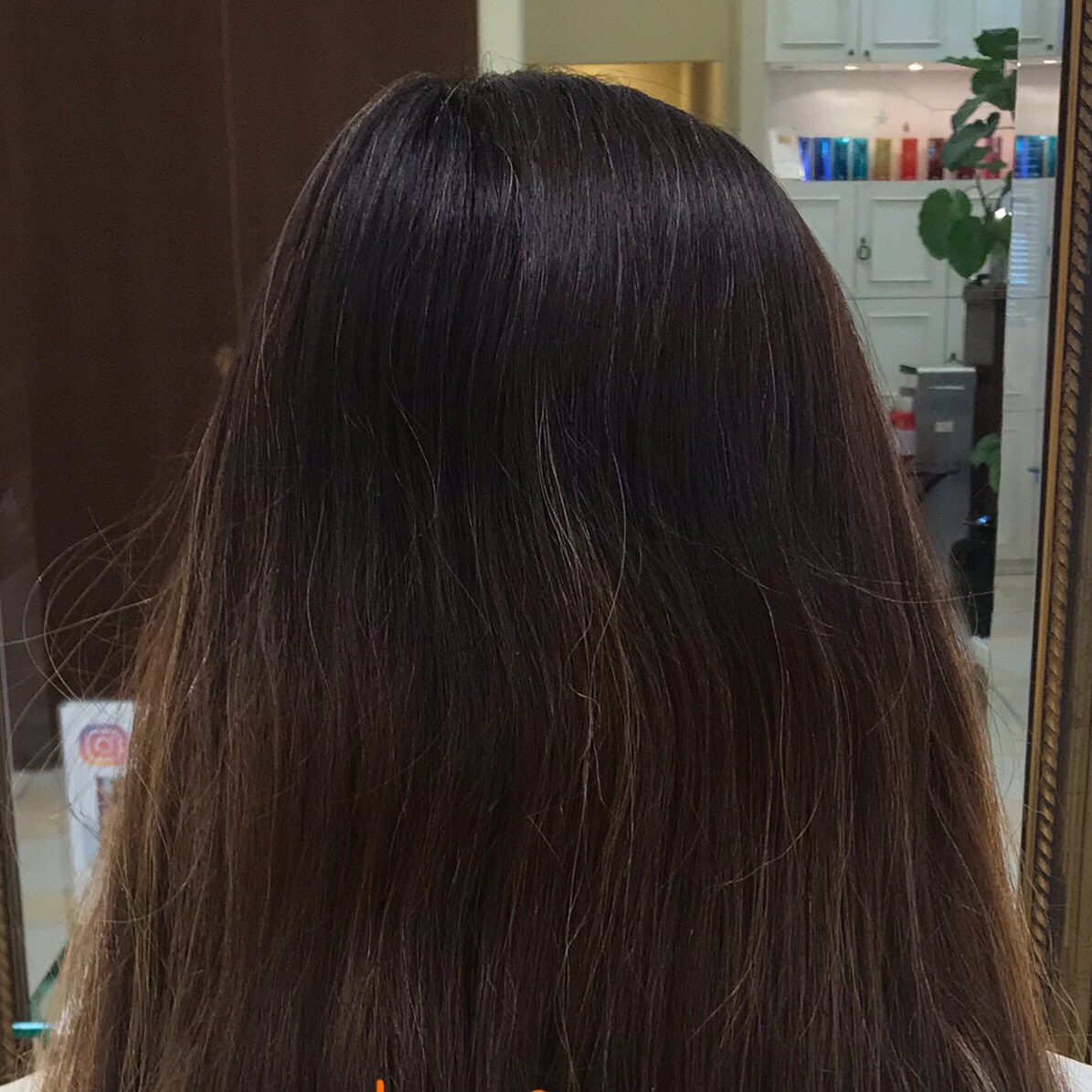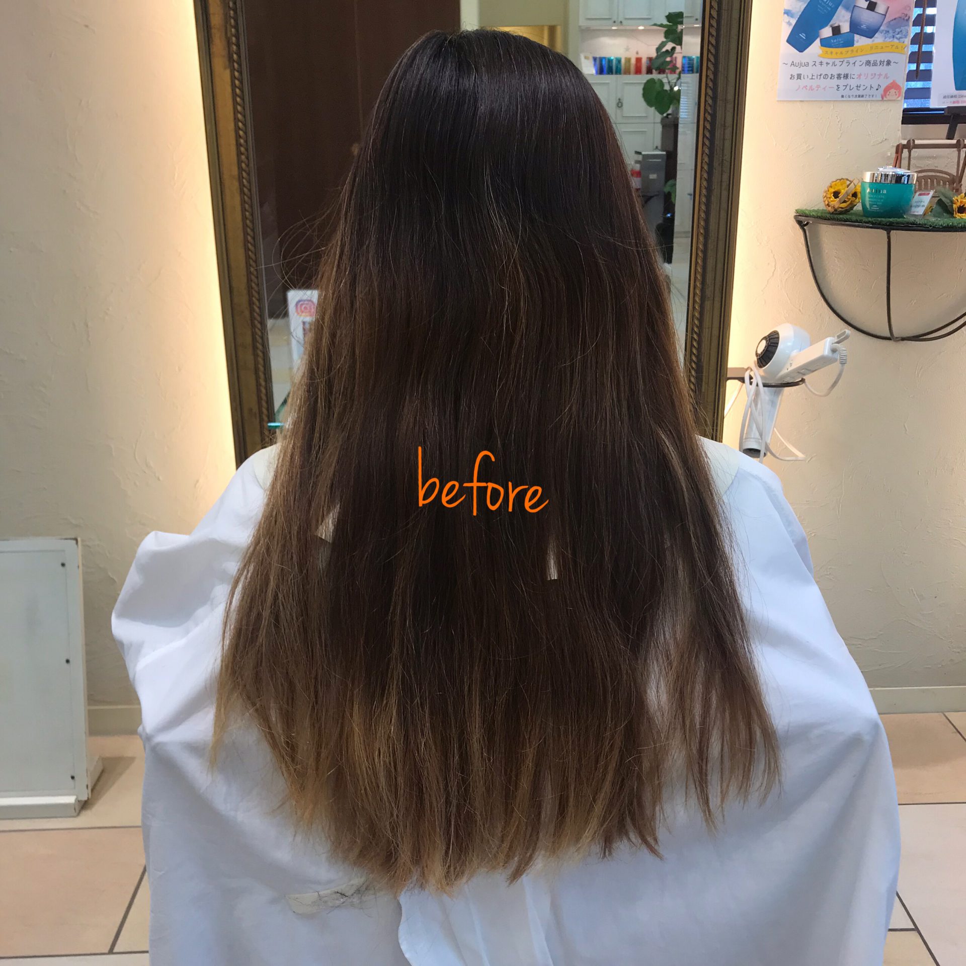 この時ベースのグラデーションを活かすので根本は暗めで毛先にいくに従って明るくするようなカラー調合で!!