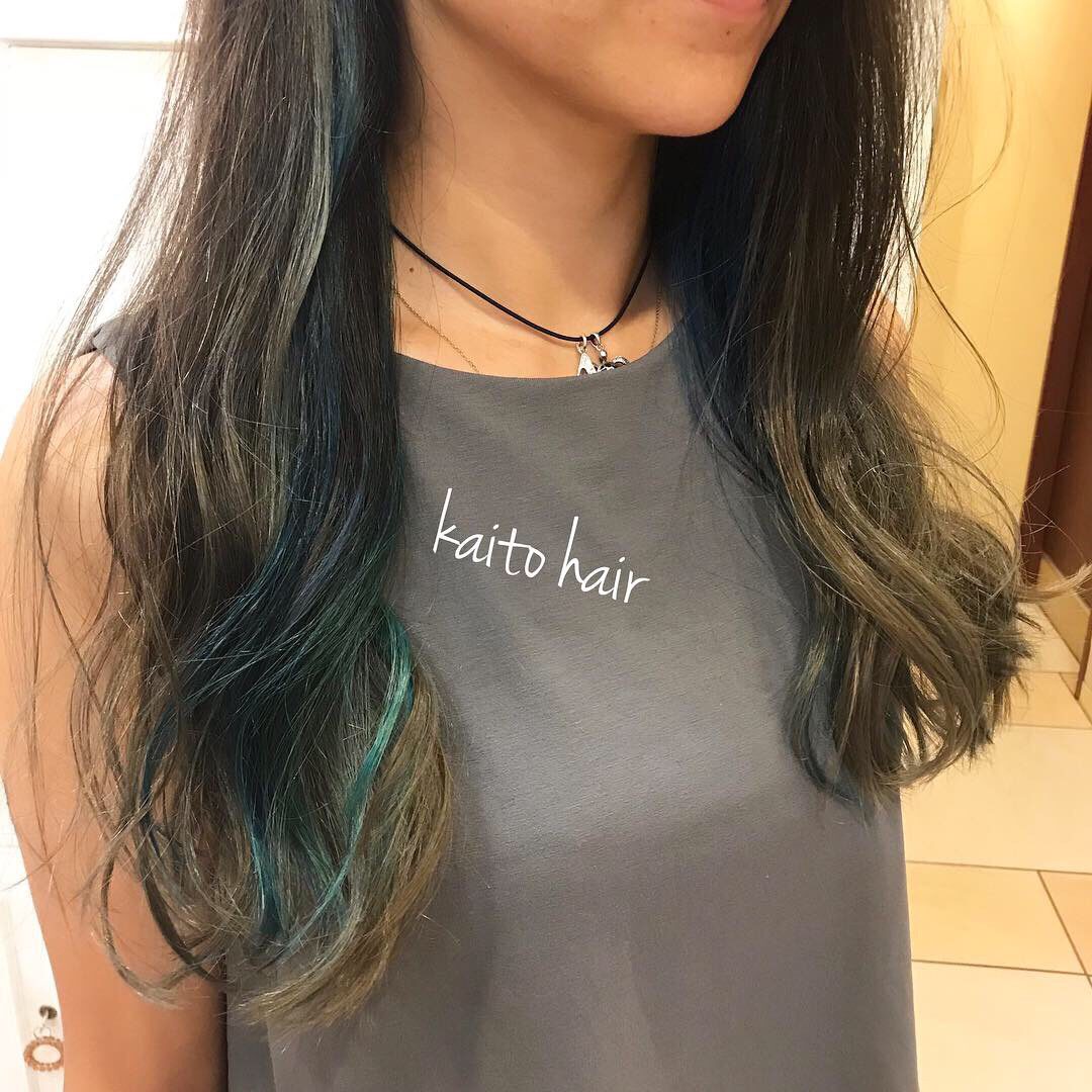 今日は白髪染めしながらインナーにターコイズのセクションカラーしてみたよ