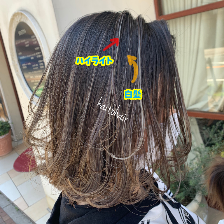 そうなると白髪もハイライトと馴染んでデザインになるので気にならなくなるわけです!!