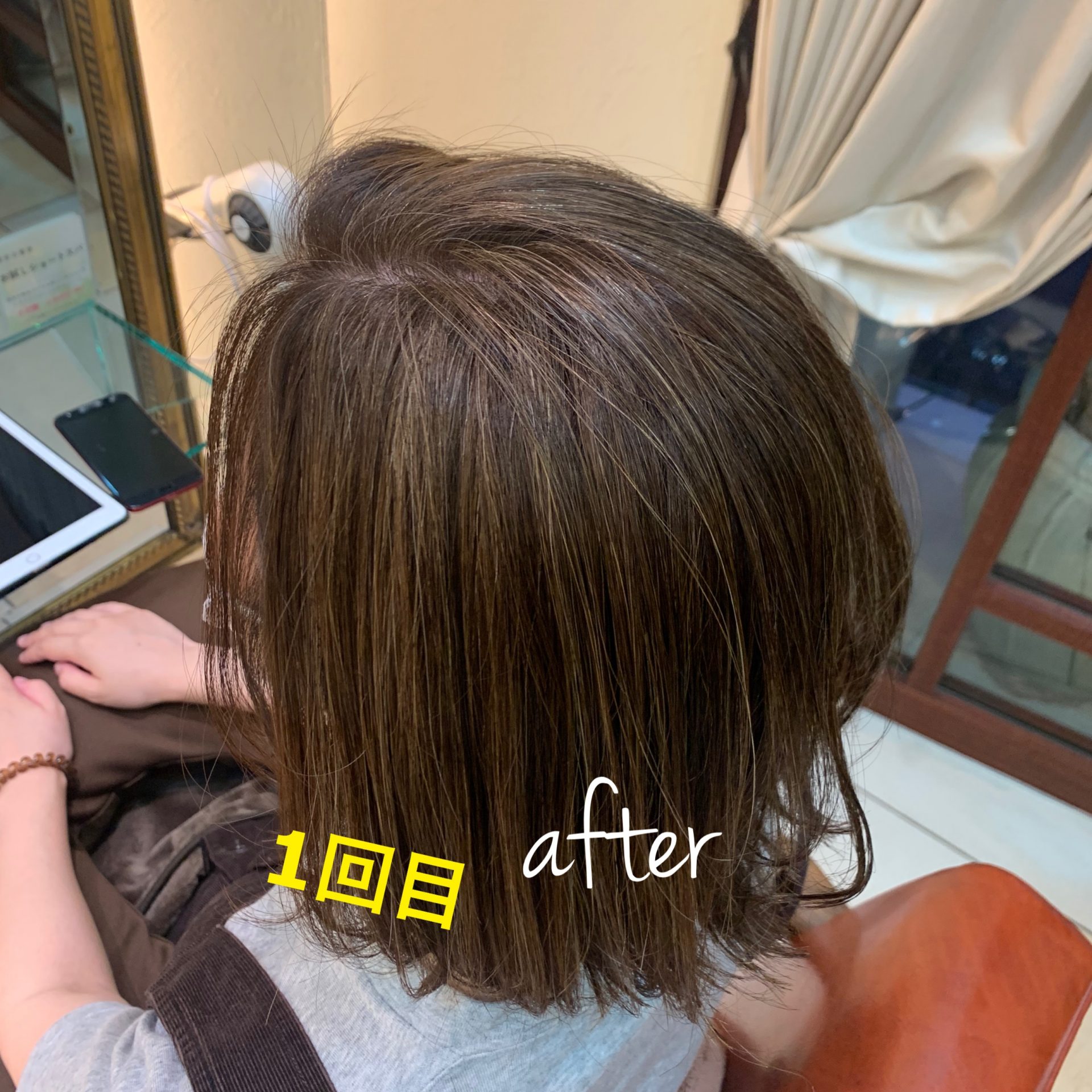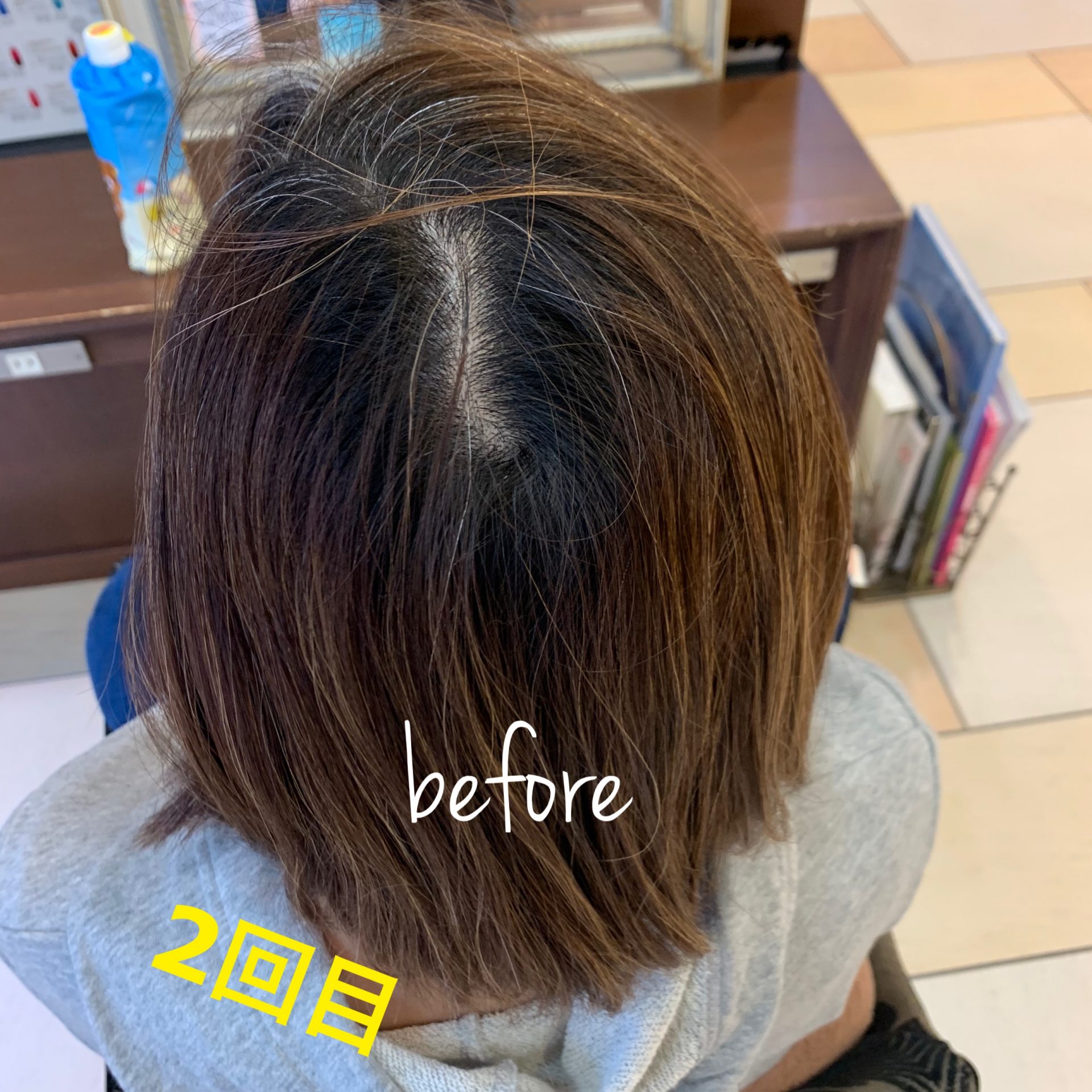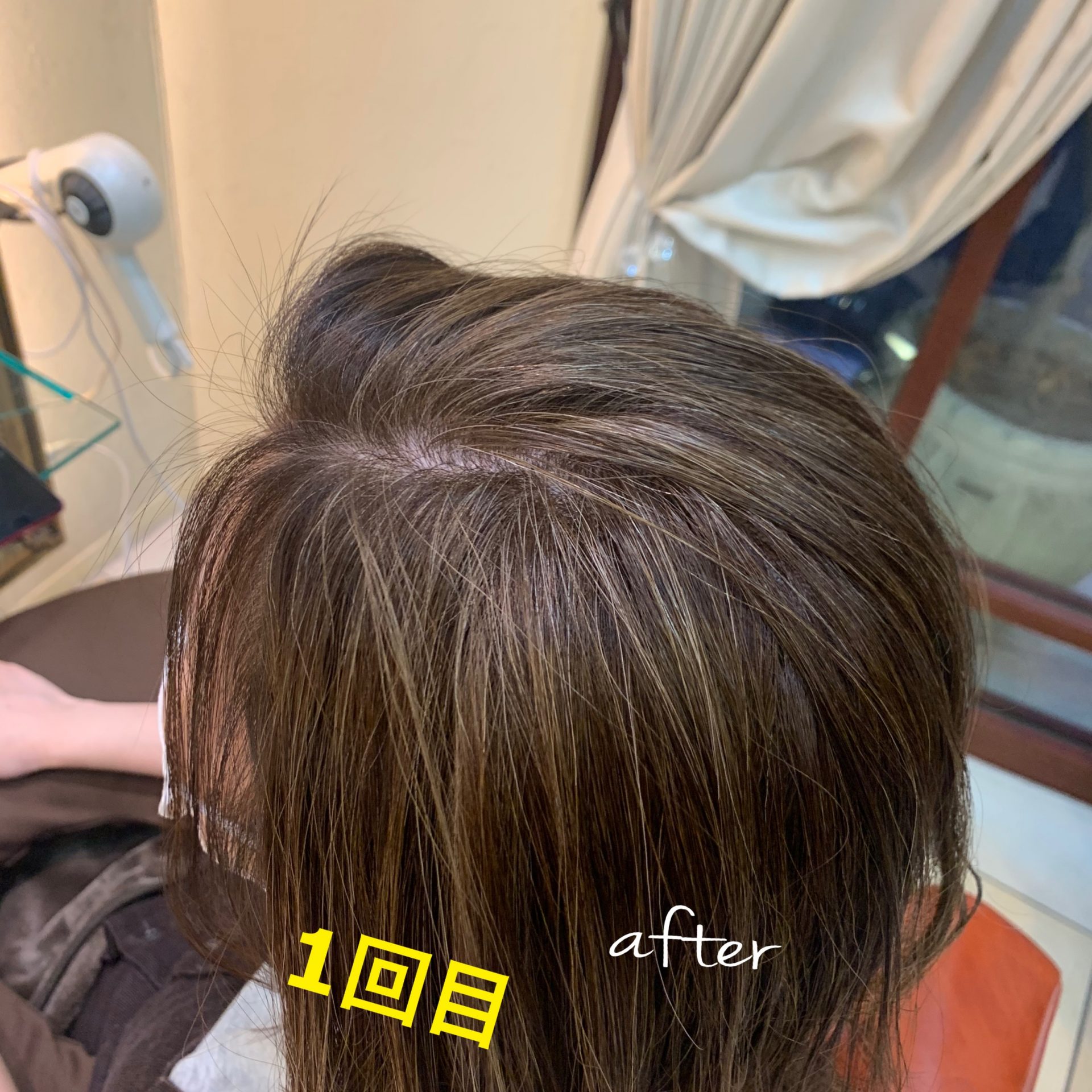 1回目のbeforeよりハイライトが入ってる分、中間から毛先と白髪が繋がってるのが分かりますよね^_^