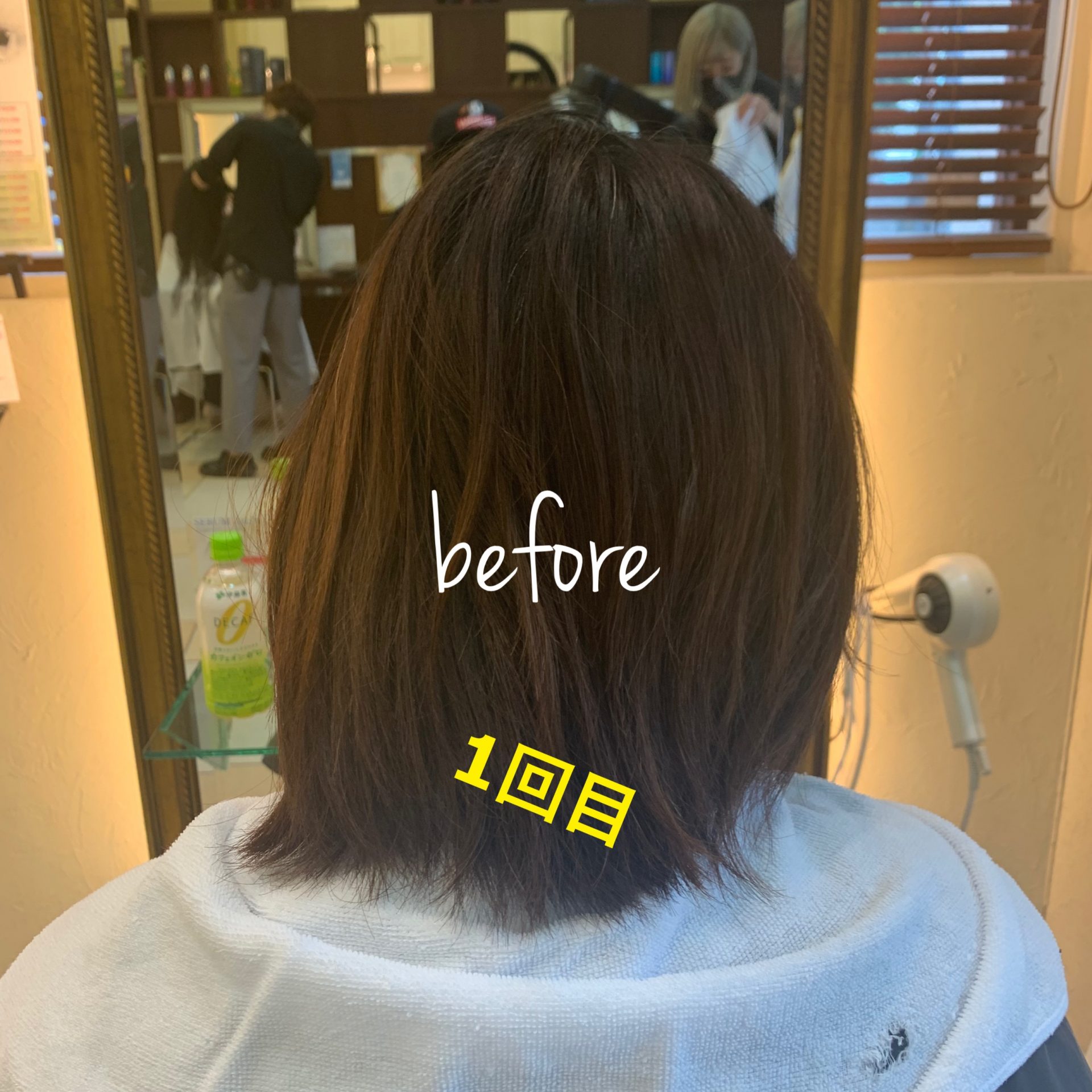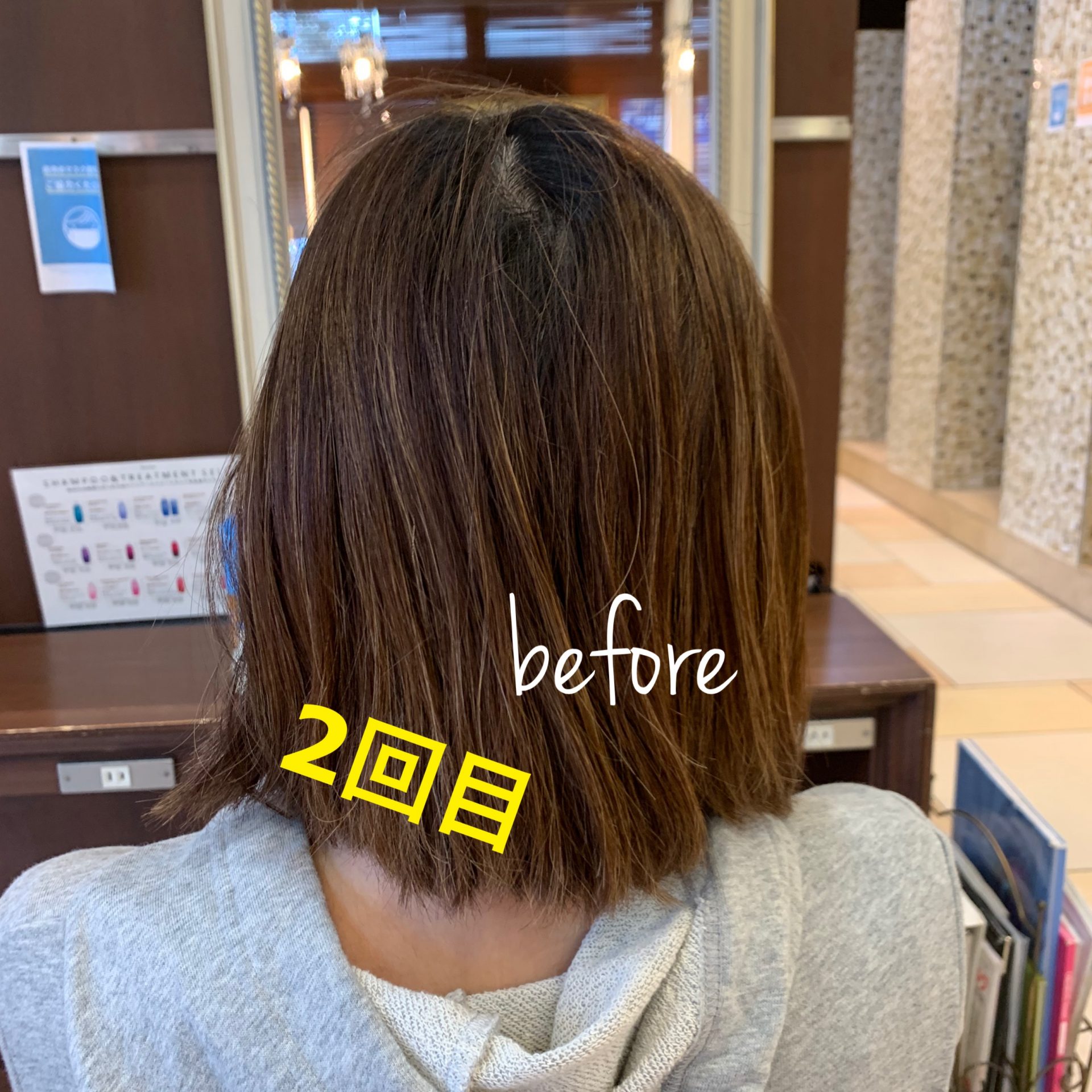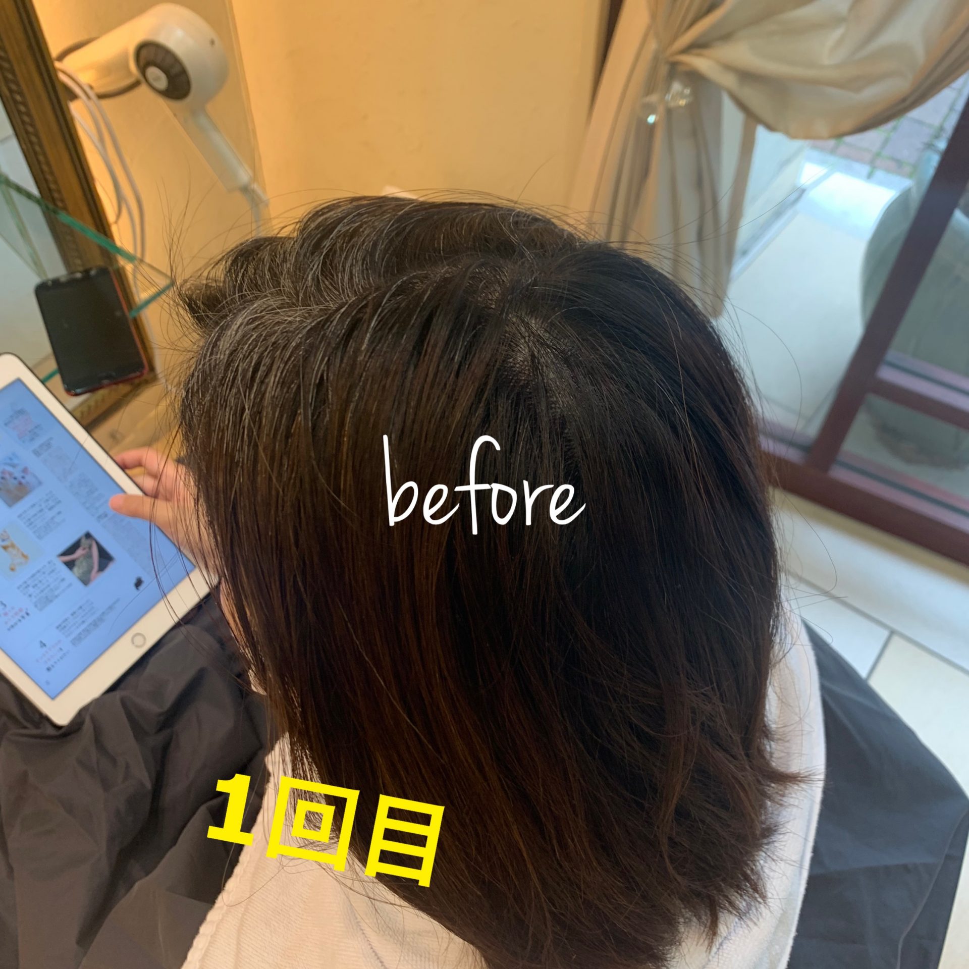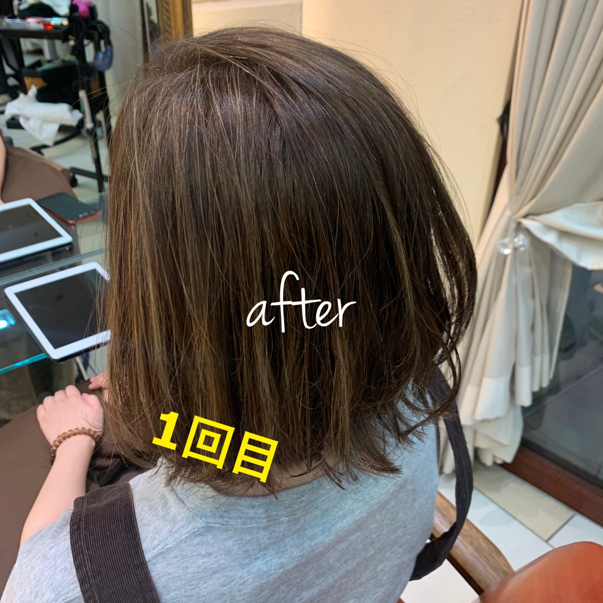 1回目のbeforeよりハイライトが入ってる分、中間から毛先と白髪が繋がってるのが分かりますよね^_^