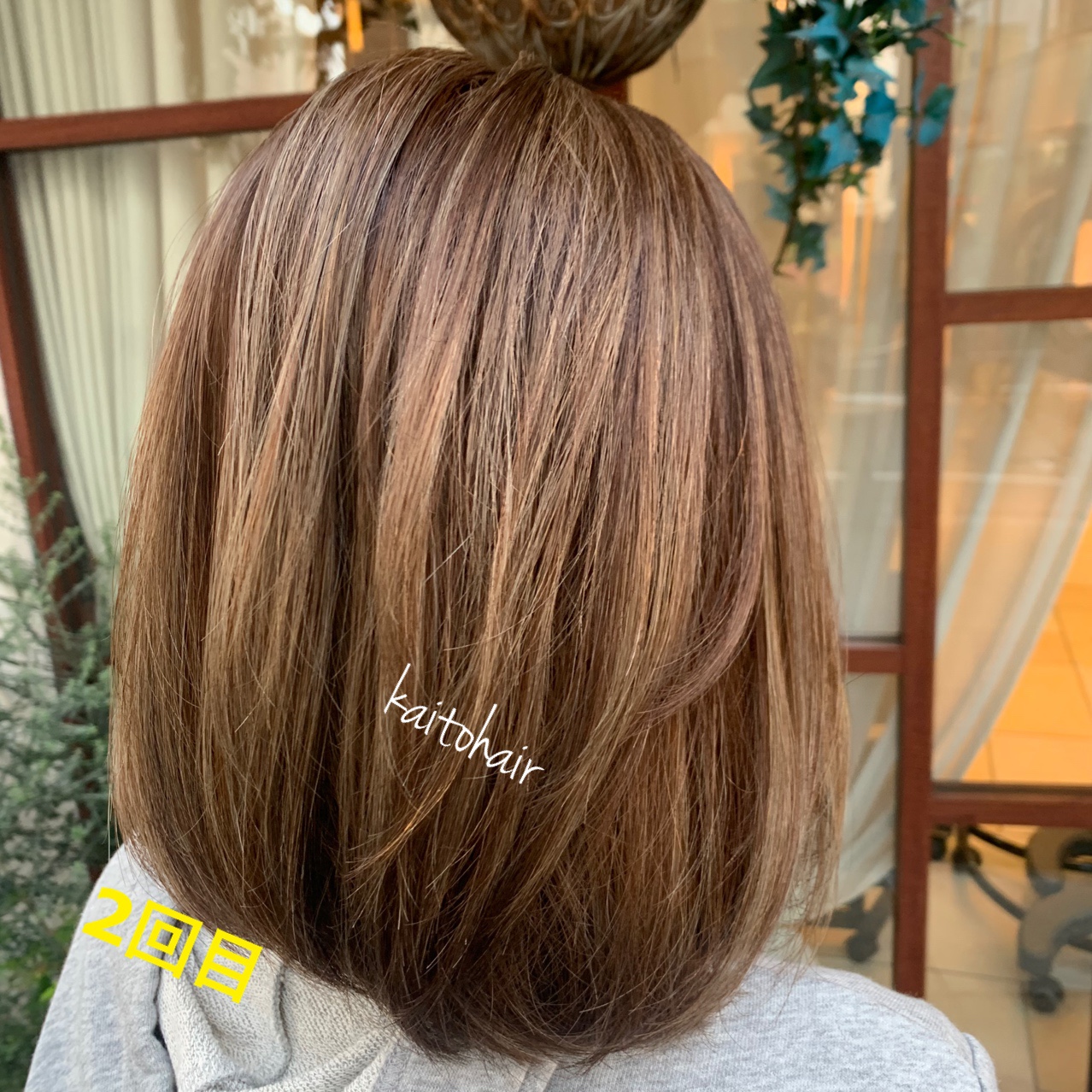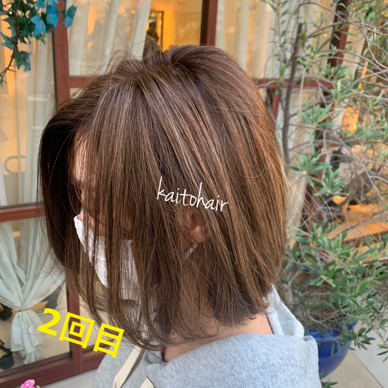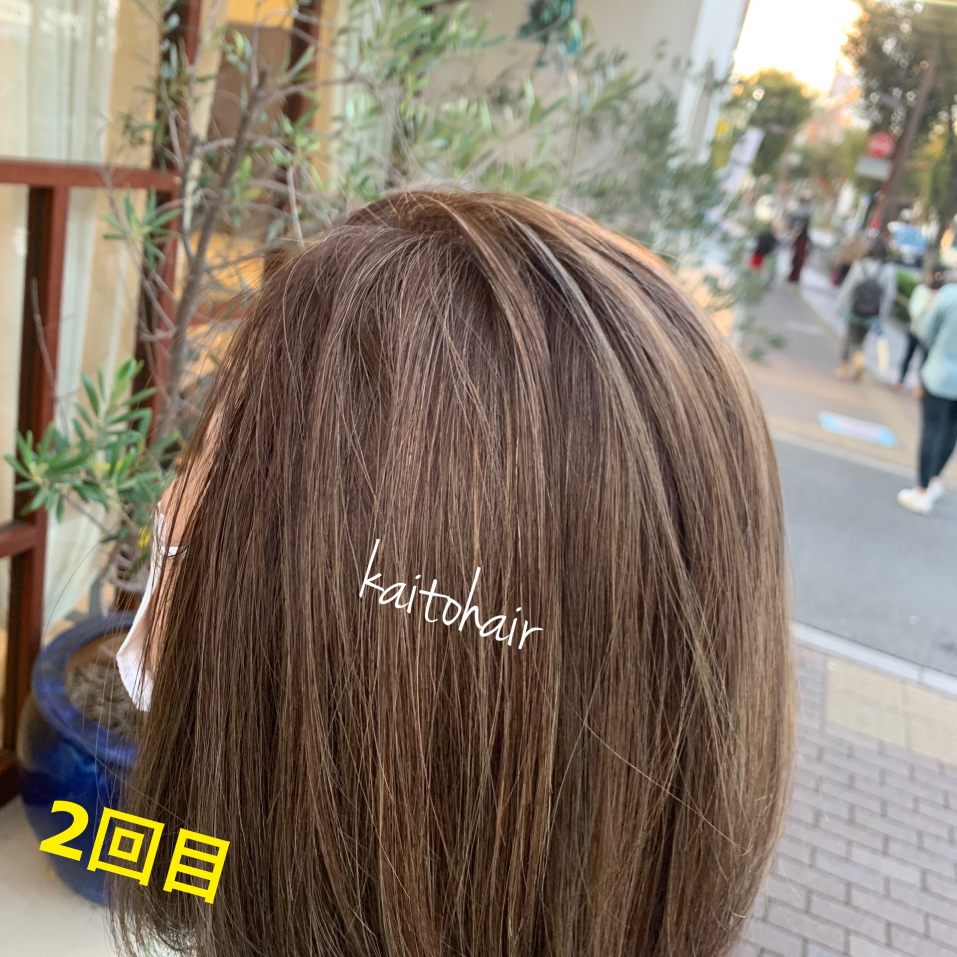 2回に分けてのブリーチを使ってのハイライトアプローチです!!