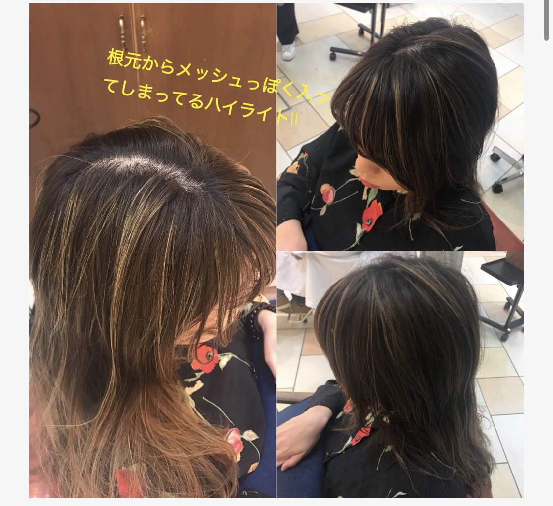 根元から極太ハイライトが入ってメッシュみたいになる!!